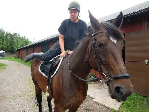 Och hem kom vi helskinnade. Det är underbart att rida o Coftan är världens raraste, goa lilla häst som pigg o glad trippade rund me MammaMagnusson utan större krusiduller. Susanne hade det lite jobbigt kanske. Inte lätt att hålla efter gamla tanter. Men hon är väl van från jobbet ??